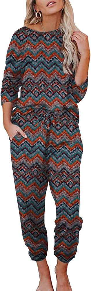 Ekouaer Women Pajamas Set Stylish Printed Long Sleeve Pjs Lounge Set Soft 2 Piece Loungewear With Pockets Geometric Large At Amazon Women S Clothing Store