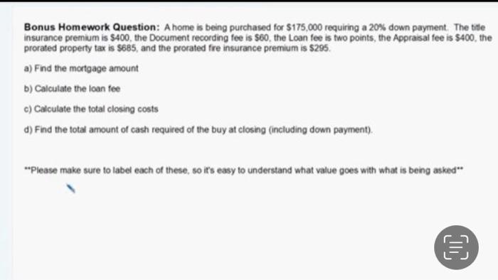 Solved Bonus Homework Question A Home Is Being Purchased Chegg Com